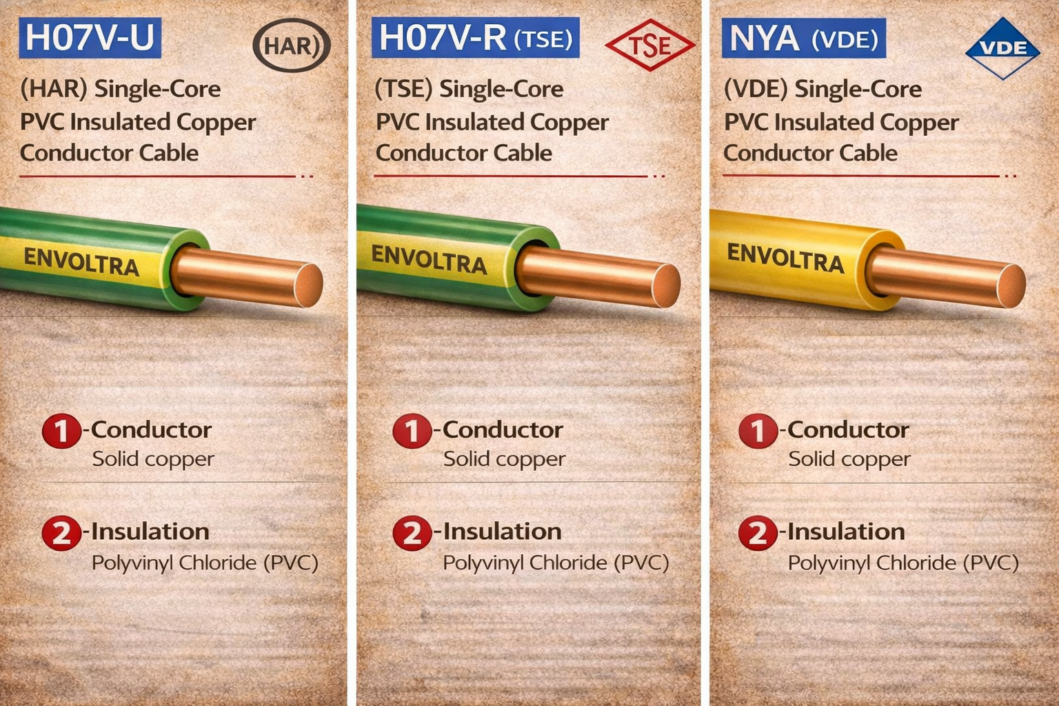 NVV, 05VV-U , 05VV-R (TSE), NYM(VDE), Cu/PVC/PVC